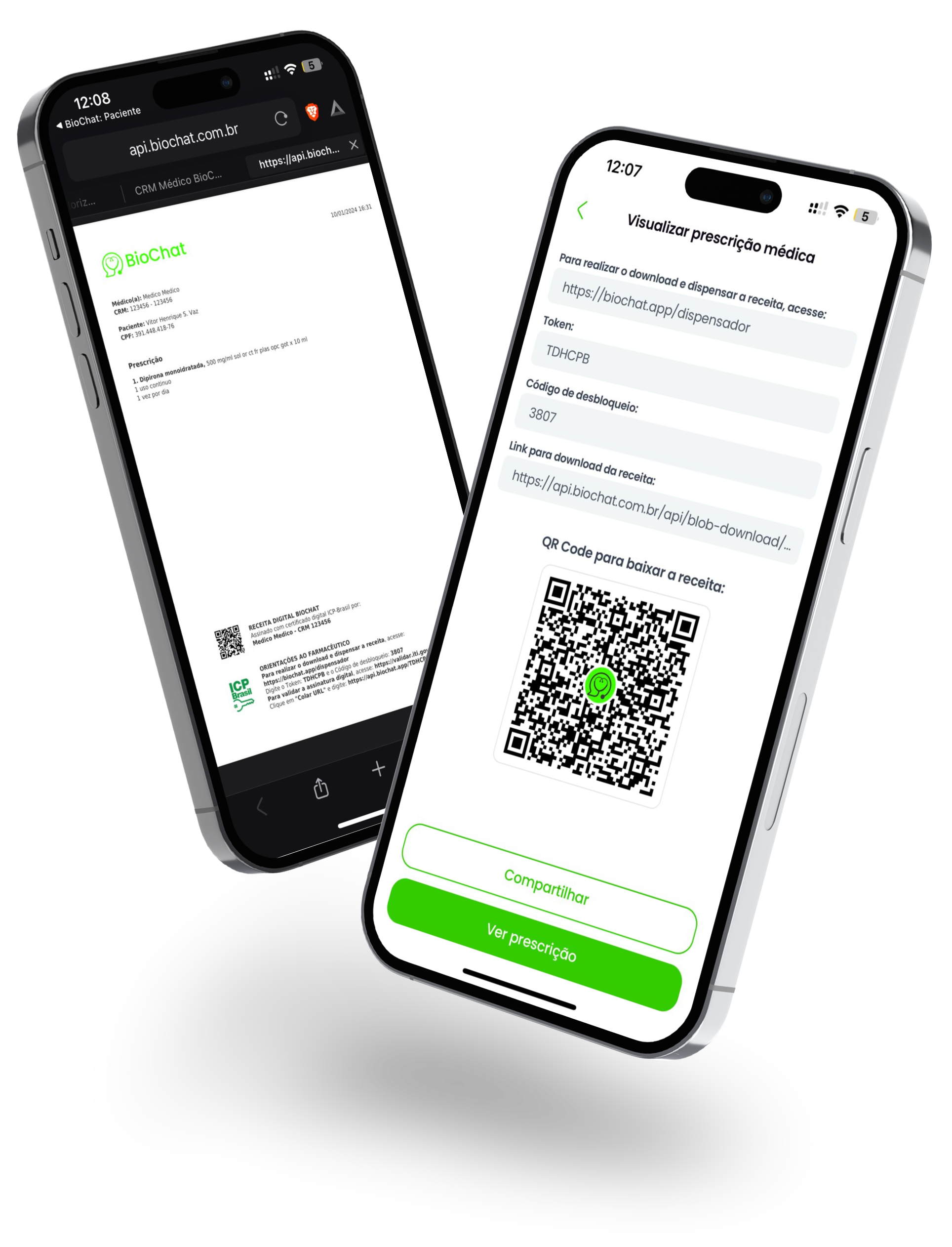 No BioChat, a prescrição digital é rápida, segura e aceita em qualquer farmácia do país. Pelo app ou pela web, você emite documentos médicos assinados digitalmente, com validade nacional.